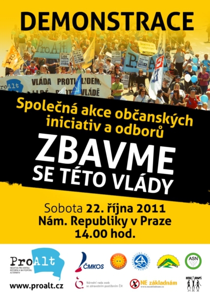 Jak jsme Vás informovali poštou pro ZO OSH již dne 7. října 2011, koná se dne 22. října 2011 od 14.00 hod. na Náměstí Republiky v Praze demonstrace proti vládním reformám. Sejdeme se v 13.45 hod. na Náměstí Republiky před vchodem do divadla Hybernia. Vezměte sebou vlajky z minulých akcí.